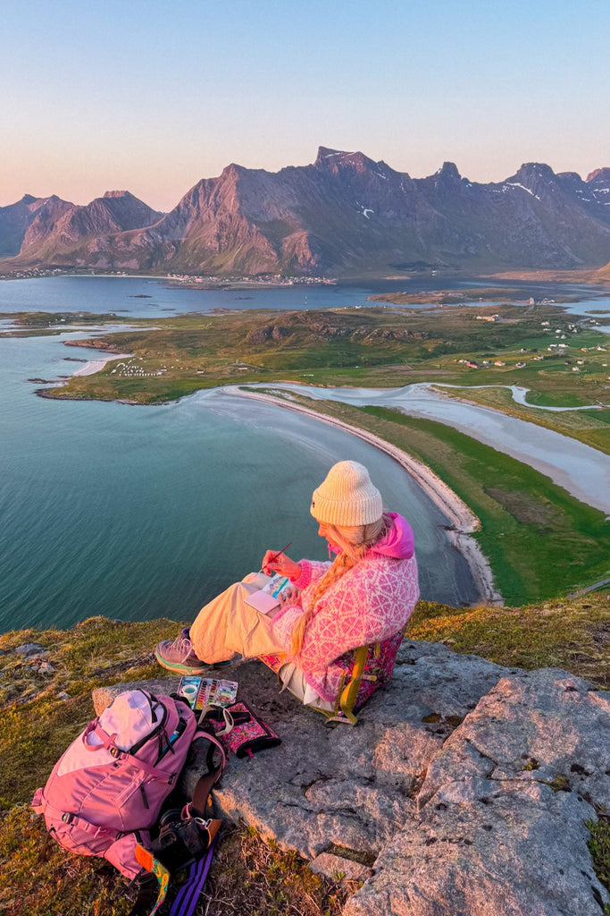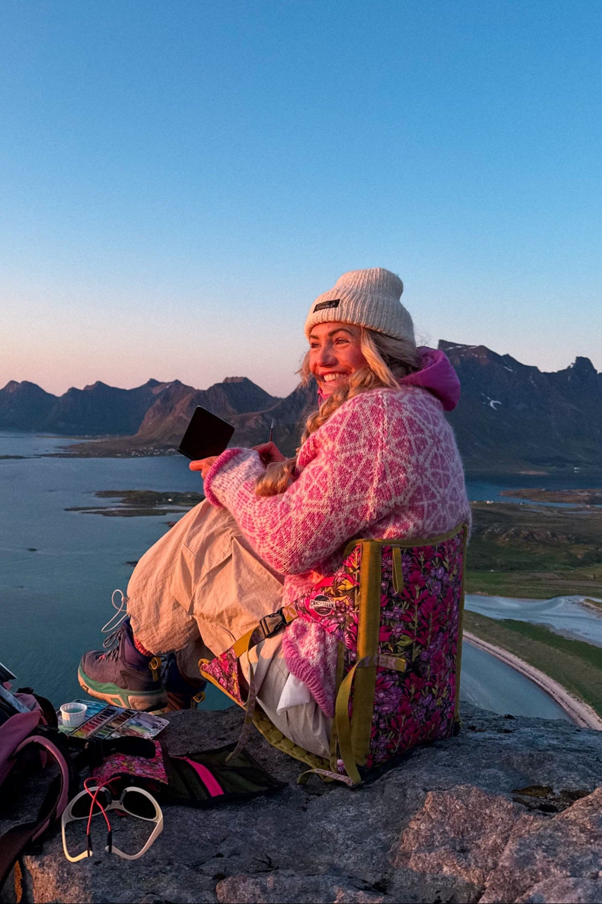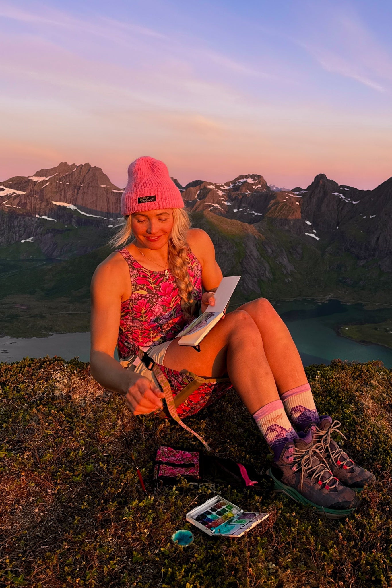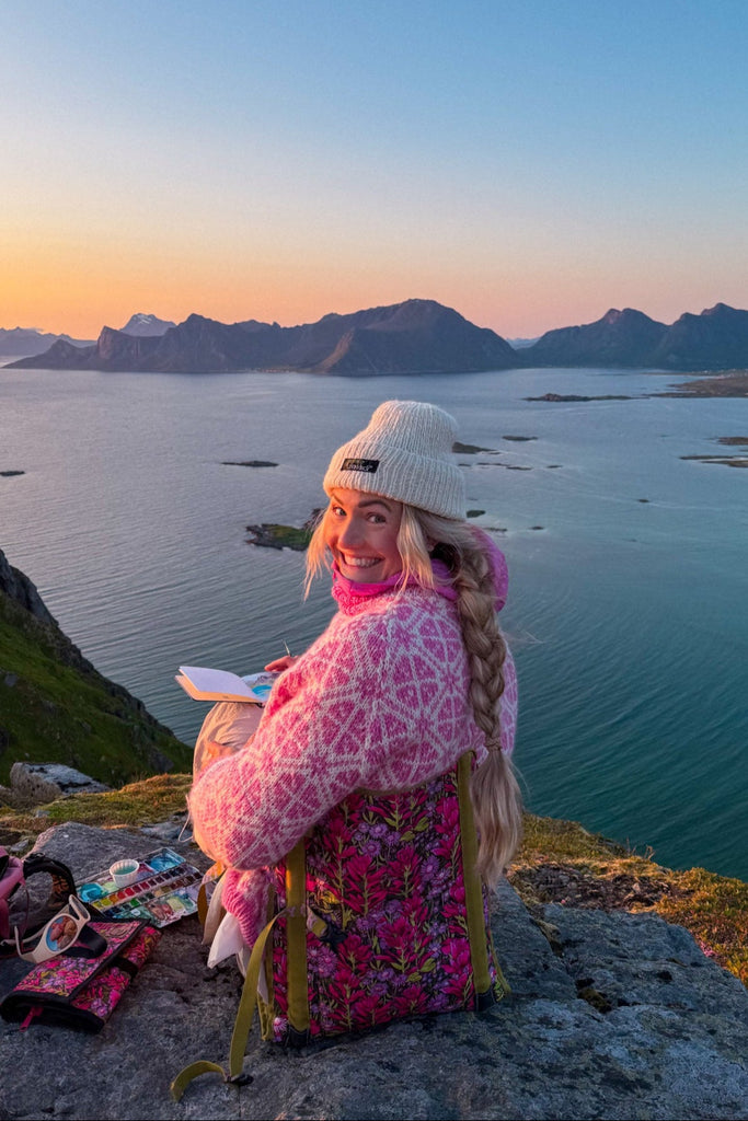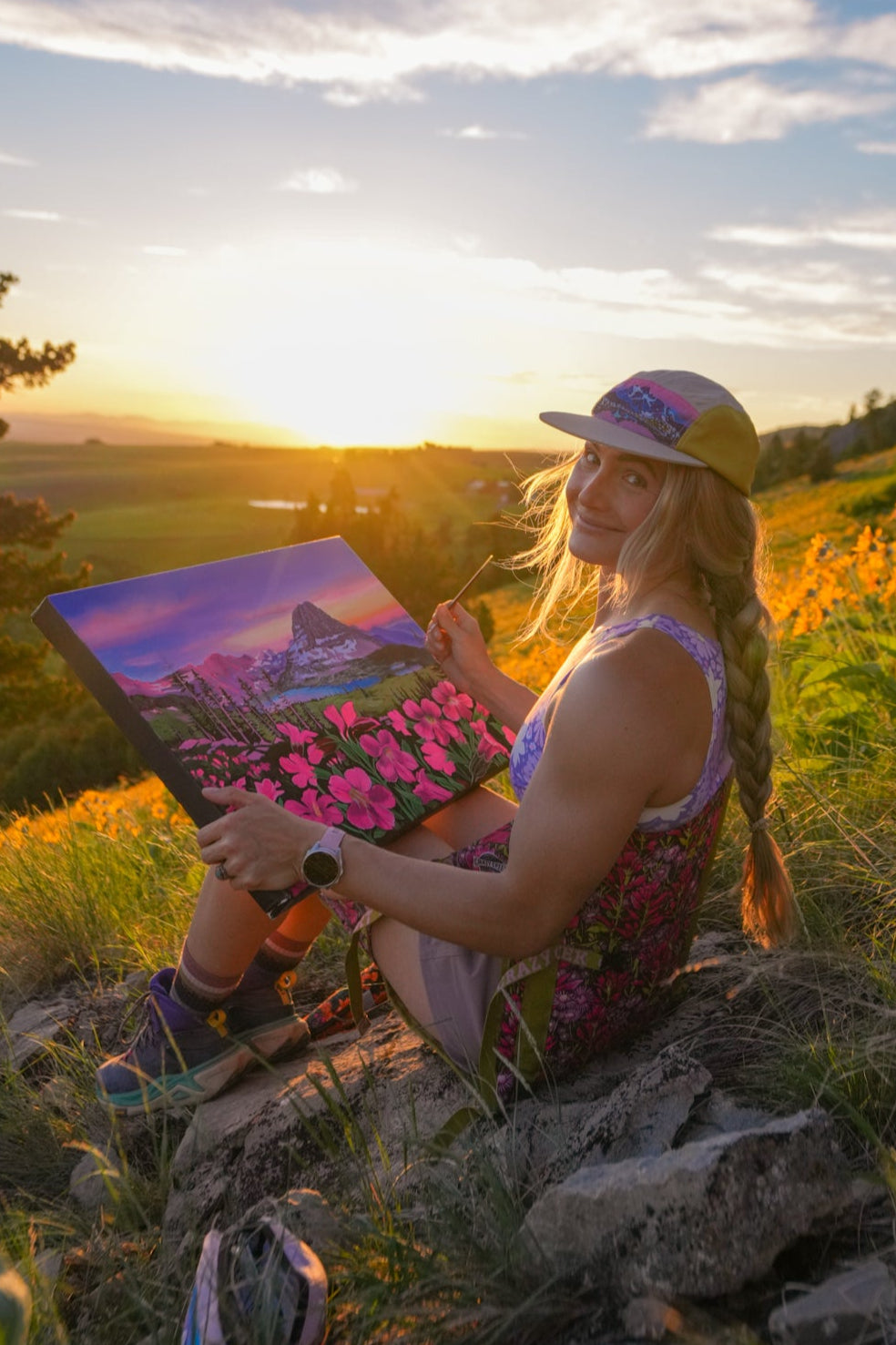 The outside is printed with Rachel's paintbrush from the original painting "August Paintbrush" of Pine Creek Lake in Montana, and the inside and trim is the most perfect olive green color! This vibrant chair combines bright pinks, pops of purple asters, bright green, and dark forest to create a truly unique and happy piece of gear you will want to bring with you everywhere all summer long, for years to come!