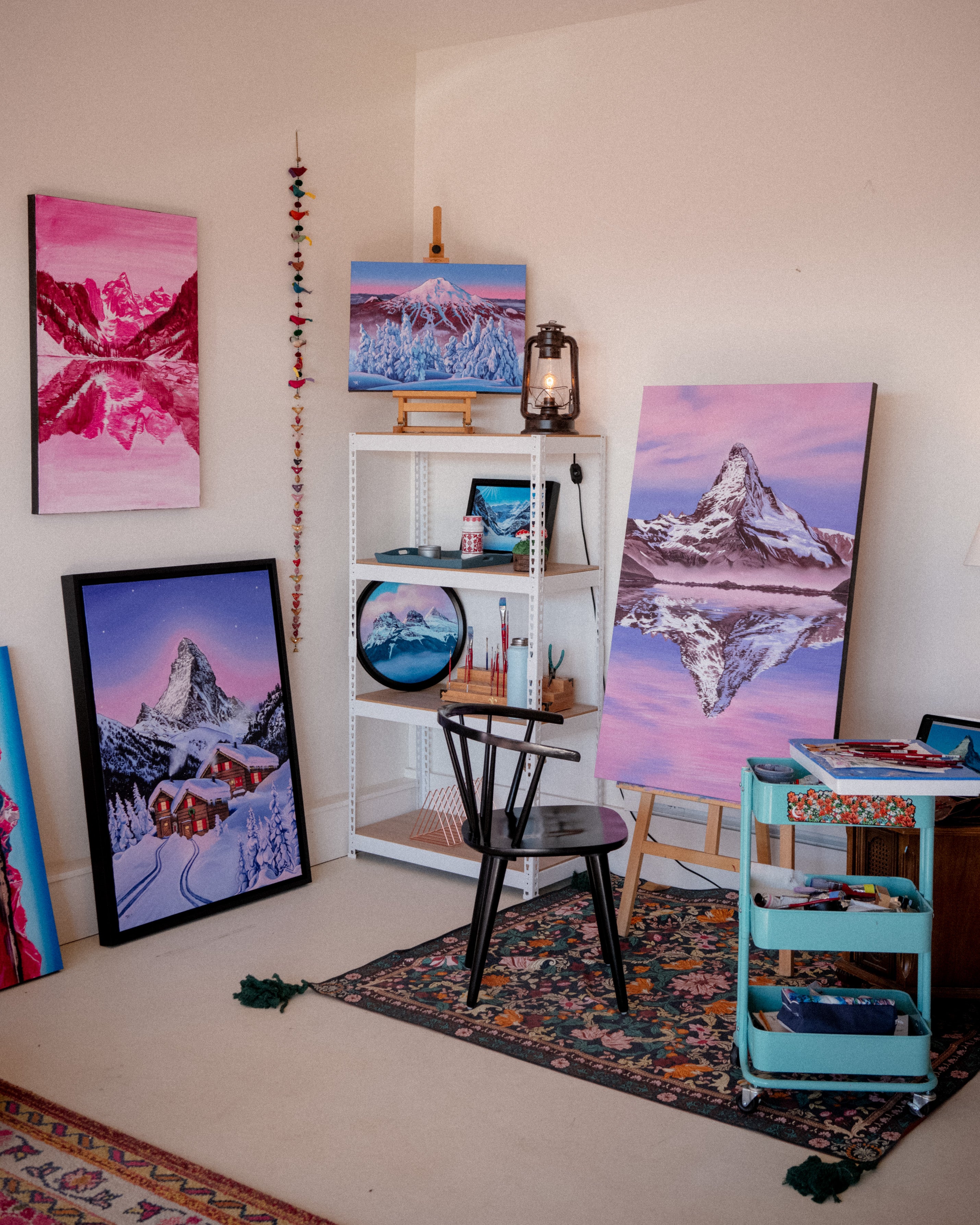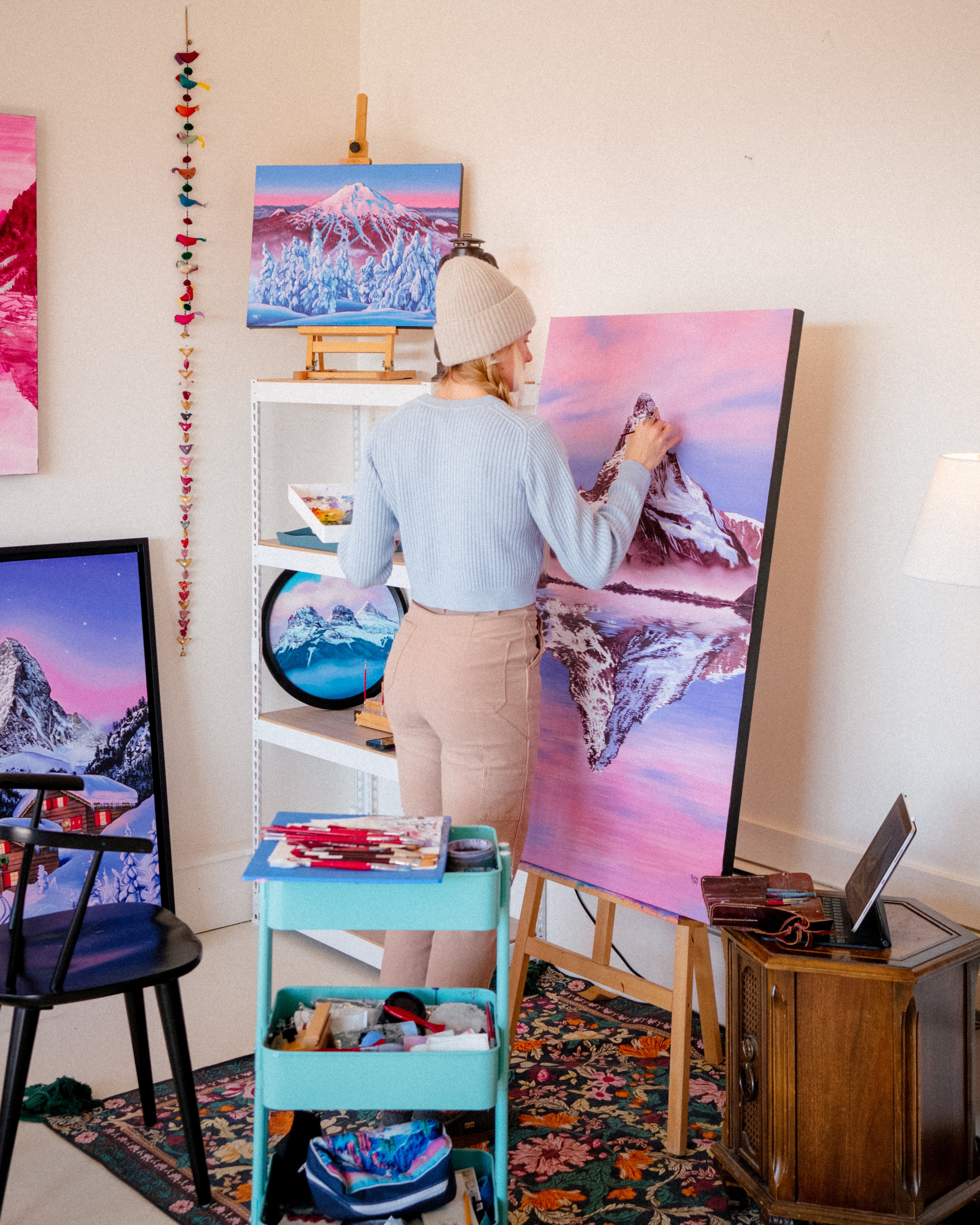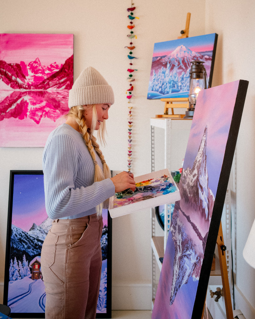 Every time you look at it, you will be transported to an early winter, tranquil paradise, watching the clouds slowly drift by during sunrise. This gorgeous archival giclee paper print will remind you to pause and find inner stillness. With meticulous detail and dreamy, realistic clouds, this painting will surely capture your imagination.