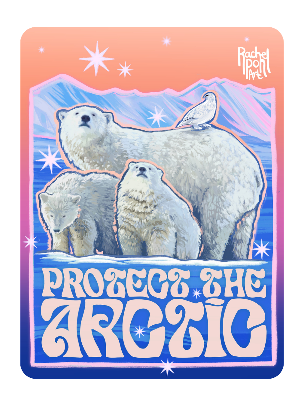 Make a stand with this powerful, beautiful sticker, created to stand up to Big Oil companies that are trying to rush drilling in protected areas of the arctic of Alaska.